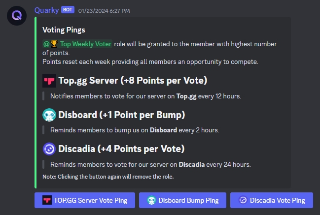 After configuring the bumping notifications using the setup wizard as described above, server owners can utilize the /bump roles command to send reaction roles to any channel. These reaction roles allow users to choose their preferences for what to vote or bump on within the server.