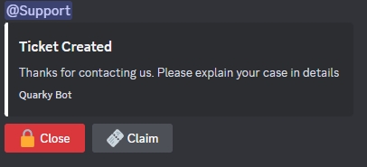 Ticket Buttonwill create a private thread for the user to answer all ticket related questions we specified before. In the image the first open ended question is shown.